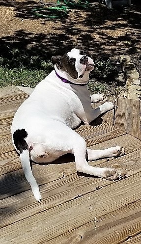 Her weaknesses are sun spots, food, and being clumsy when excited (which is kind of cute). As much as she loves her food, she’s not overly protective of it so no need to worry about that. She is housebroken and crate trained. She sleeps fine in her crate, but she wouldmuch rather cuddleunder the covers in bed.